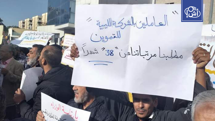 ونظم موظفو الشركات المتعثرة والمنسحبة تظاهرة أمام مقر رئاسة الوزراء في العاصمة طرابلس للمطالبة بحل جذري لمشاكلهم.