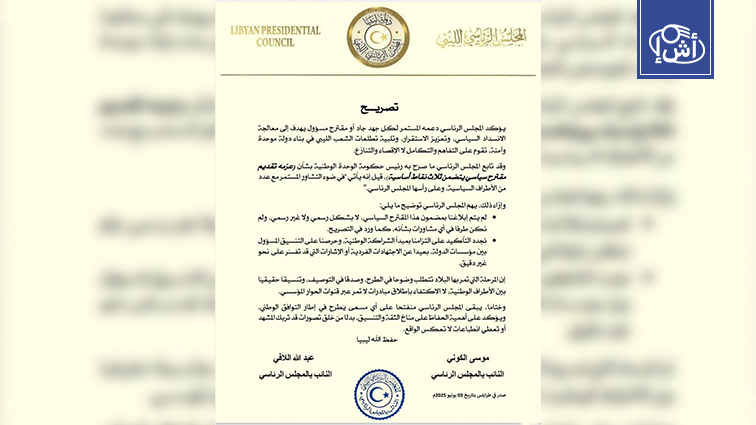 أعرب المجلس الرئاسي الليبي عن رفضه للمقترح السياسي الذي أعلن عنه رئيس حكومة الوحدة الوطنية عبد الحميد الدبيبة، معتبراً إياه “تجاوزاً للمسار التوافقي” الذي يجب أن يكون شاملاً ومبنياً على التفاهم الوطني.