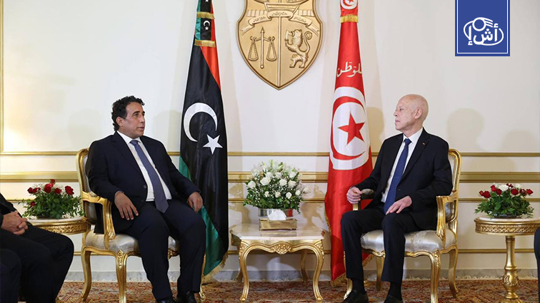 رئيس المجلس الرئاسي الليبي محمد المنفي والرئيس التونسي قيس سعيّد، أكد خلال لقائهما في قصر قرطاج، التزامهما بتعزيز التعاون الثنائي بين ليبيا وتونس، إضافة إلى موقفهما الثابت تجاه القضية الفلسطينية.