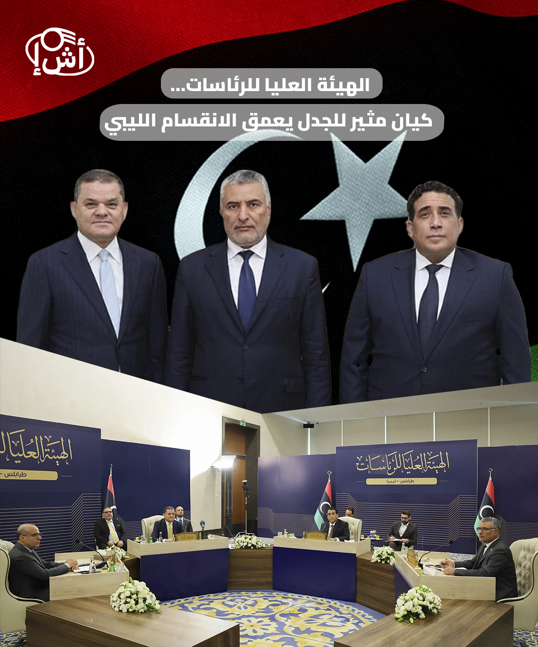 هذا الجسم لا يقوم على أي سند دستوري صلب، فالإعلان الدستوري وتعديلاته يمنح مجلس النواب وحده حق إنشاء الهيئات السيادية وإعادة تشكيل البنية القيادية للدولة، بينما الهيئة الجديدة وُلدت من اجتماع مغلق في طرابلس بين المنفي والدبيبة وتكالة واللافي، ثم قُدّمت للجمهور بوصفها “سلطة سيادية عليا” دون المرور بأي مسار تشريعي.