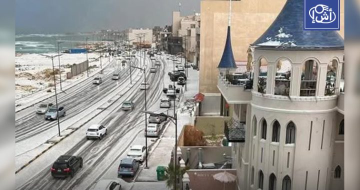 ثلوج نادرة تكتسي بها العاصمة الليبية طرابلس في ظاهرة جوية غير مألوفة