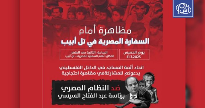 وتداولت منصات التواصل الاجتماعي الإعلان الخاص بالمظاهرة المقررة في تل أبيب، والتي تهدف إلى الاحتجاج … تابع قراءة دعوة للتظاهر أمام السفارة المصرية في تل أبيب تثير موجة غضب واستنكار