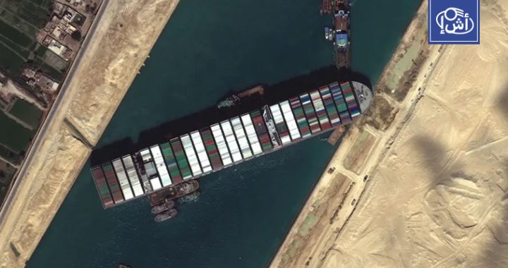عطل مفاجئ يتسبب في جنوح سفينة بقناة السويس (فيديو)