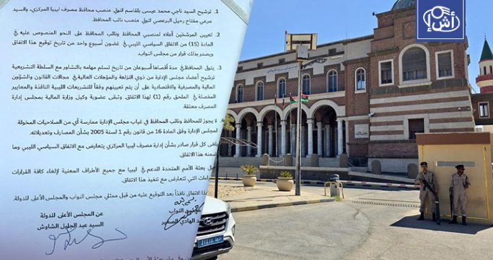 ووقع الاتفاق الهادي الصغير ممثلاً لمجلس النواب، وعبد الجليل الشاوش ممثلاً للمجلس الأعلى للدولة، في … تابع قراءة مجلسا النواب والدولة يوقعان اتفاقاً لحل أزمة مصرف ليبيا المركزي