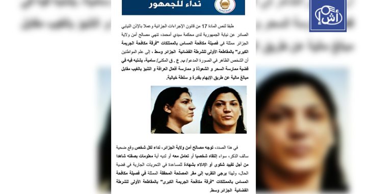 وفي منشور عبر الصفحة الرسمية لمديرية الأمن الوطني على موقع “فيسبوك”، نشرت شرطة العاصمة صورة … تابع قراءة محتال يتنكر في زي امرأة ويمارس الشعوذة بالجزائر