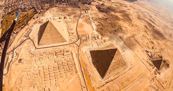 مدون مصري يحطم حاجز الخوف ويحلق فوق الأهرامات في تجربة قفز مظلي