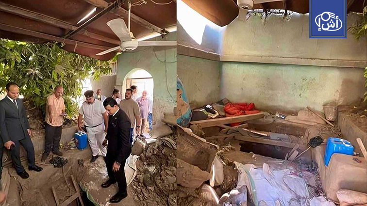 كما تم الكشف عن سرداب أفقي يمتد من قاع الحفرة بطول 6 أمتار، يمر أسفل غرف مكتب الصحة، مع وجود كميات من مخلفات الحفر وألواح خشبية وأدوات يُعتقد أنها استخدمت في العمليات.