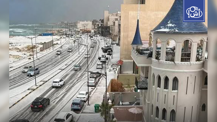 ثلوج نادرة تكتسي بها العاصمة الليبية طرابلس في ظاهرة جوية غير مألوفة